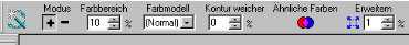 Jetzt nur noch mit dem Zauberstab aus dem Menü Maskenwerkzeuge den weißen Hintergrund und dann auf "Ähnliche Farben" anklicken und ebenfalls mit dem Verlauffüllwerkzeug aus dem Menü Füllwerkzeuge, Auswahl linear, den Hintergrund nach eigenem Farbgeschmack füllen. |